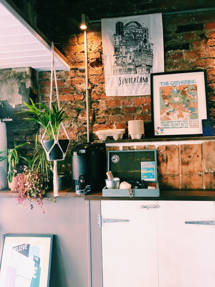 Finding Holmeside right in Sunderland centre got me a bit giddy. I had resigned myself to the fact that chain coffee shops were the only choice here. But this little jewel, squeezed in the middle of a Mexican and a cocktail bar is an absolute find and, still with its original vintage Newsagents shop header at the front, you have to have your eyes peeled to find it. Perhaps because of its modest exterior (the only thing that screams ‘coffee shop’ is on a little blackboard), the rewards inside seem all the greater.
