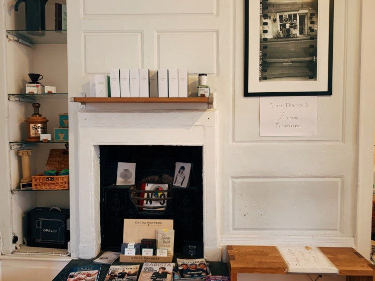The shop sits in a beautifully restored traditional Bath stone building with all the original features intact. Coffee magazines are displayed tastefully in an old fireplace, and coffee capsules sit quietly on the mantelpiece above it. The front looks like something rather like an old chemist’s shop, with all the signs telling you maybe Jane Austen popped in here once for an aspirin…